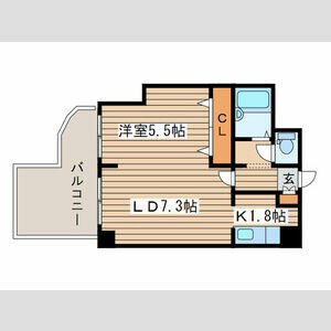 1LDK(LD7.3 x K1.8 x 洋5.5) |